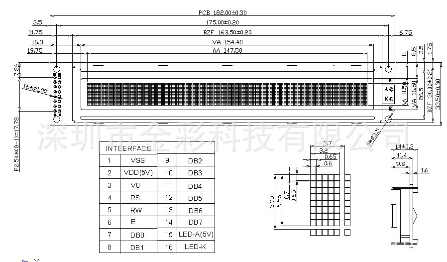 显示内容 | 40个字符×2行 | 工作电压 | +5V/+3.3V |