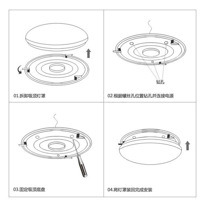 五:雷达感应双亮度LED吸顶灯 产品安装方式