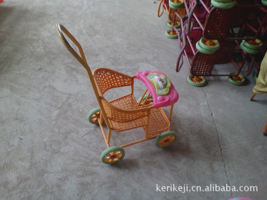 仿藤编音乐童车,造型小巧玲珑,工艺精美纯手工制作,结实。体积小质量轻.经久赖用.凉爽舒适、不怕尿湿、可以直接用水冲洗,易打理清洗,冲洗完很快又可以坐,夏天宝宝坐得更舒适。可以给宝宝当餐椅,又是母亲出行的好帮手.采用圆形EVA发泡轮,推动轻盈无声适用于年龄4-24个月的婴儿使用。