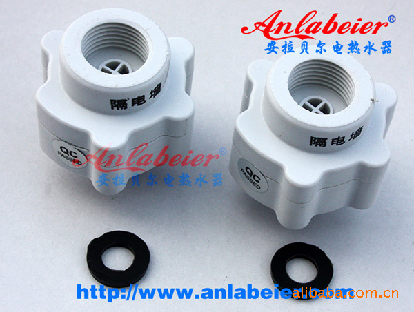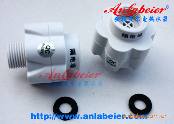 “隔电墙”(即水电阻衰减隔离法)就是利用了水本身所具有的电阻(如国标规定自来水在15℃时电阻率应大于1300Ω.cm),通过对电热水器内通水管材质的选择(绝缘材料),管径和距离的确定形成“隔电墙”。当电热水器通电工作时,加热内胆的水即使有电,也会在通过“隔电墙”时被水本身的电阻衰减掉而达到将电隔离的目的,使热水器进出水两端达到几乎为零的电压和0.02mA/kw以下的极微弱电流大大优于国标0.25mA/kw的标准。