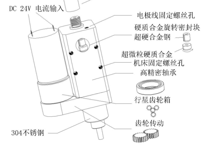 4、 电机采用24v直流电机,高功率低转速运行,寿命长,扭力大。