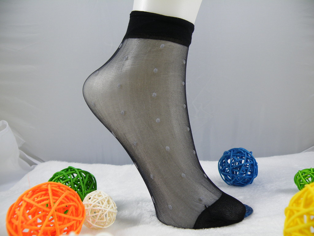 春夏款水晶丝透明波点细点对对袜女士提花圆点短袜薄丝袜