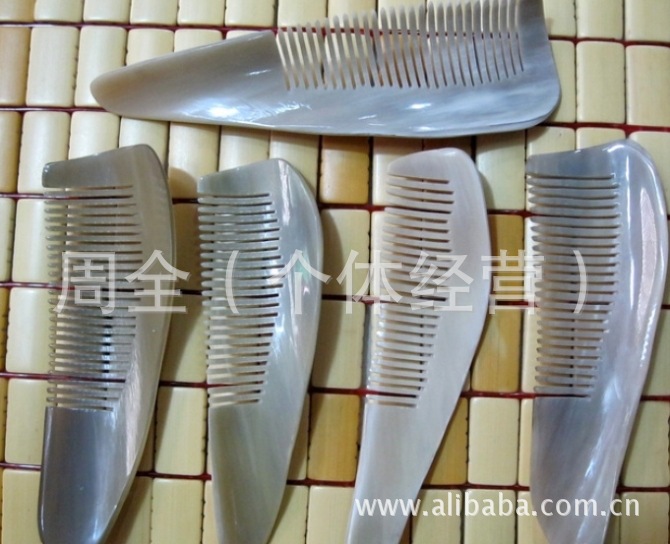 牛角梳的作用】 据《本草纲目》载:“牛角,酸咸、清凉、无毒”。牛角本身是中药的一种,因此牛角制品有一定的保健作用。使用角梳不会产生静电感。每天清晨用角梳梳头数次,它的药理性能在按摩人的大脑头皮和头部神经时促进血液循环,无形之中渗入人体。晚上用角梳按摩头部,它的“凉血解毒”药理性能使人放松一天的紧张和疲劳情绪。经常使用角梳能有效地减少和消除脱发、断发头皮屑。长期使用能消除头痛等头部疾病,让您头脑清醒、精神焕发、思维敏捷。头部是人体的统帅,一定要用最好的方式去护理。 头发梳理是梳妆打扮的组成部分,而且正确的梳理头发可以美化容貌,保护头发,保健大脑等。 头部黑牛角梳是“诸阳之首”,人体的十二经脉和七经八脉也都汇合于此。头部穴位有几十个,约占全身穴位的1/4,还有十多个特定刺激区,所以头发的梳理具有保健之功效。 在头发的梳理过程中,通过对“百会”、“四神聪”、“上星”乖穴位的刺激,可以增加头发根部的血液流量,增强黑色素细胞的活性,并增加毛球黑色素细胞的数量,乌发的“营养”便得以补充。 还有,在人的头皮上,分布着许多血管、神经、皮脂腺、汗腺等,梳头时不仅能除去头皮屑和油垢,而且当梳齿在头上来回轻轻划过时,能刺激神经末梢,通过大脑皮层来调节头部神经和让头部紧张的状态得以松弛,促进血液循环,使毛囊、皮脂腺。汗腺得到充分的营养【角梳的使用和保养】 角梳使用:角梳系牛角制作而成,牛角自古就是一种中药。用角梳梳头,可以去垢而不沾,解痒而不痛,温润而不挂发,还有加速头皮血液循环,能增强免疫力,清炎凉血,镇痛止痒,防止静电,不脱发,祛屑护发,舒筋活血,安神健脑,促进头发生长等独特的保健作用。俗话说“ 千过梳头,头不白 ”。每天早晚用牛角梳,由前向后,再由后向前轻轻触及头皮各梳刮数遍。要用力平均,长年用角梳梳头,可疏经通络,促进头部血液循环,防止头发营养不良而致长白发、黄发和脱发。