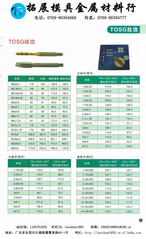 正宗OSG丝攻,YAWAWA丝攻,日本富士丝攻,TOSG丝攻,美国信达丝攻,