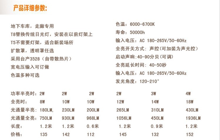 慧蓝LED声光控感应T8/T5日光灯管10W照明