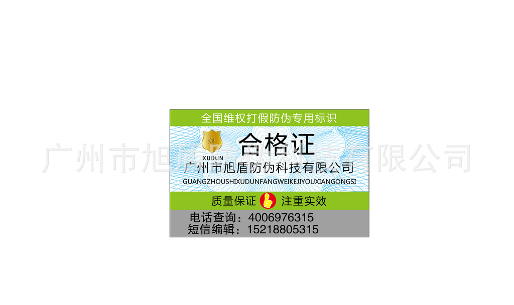 旭盾防伪厂家供应定电码防伪合格证 合格证可以通过电话查询真伪,下面是公司的简单介绍: