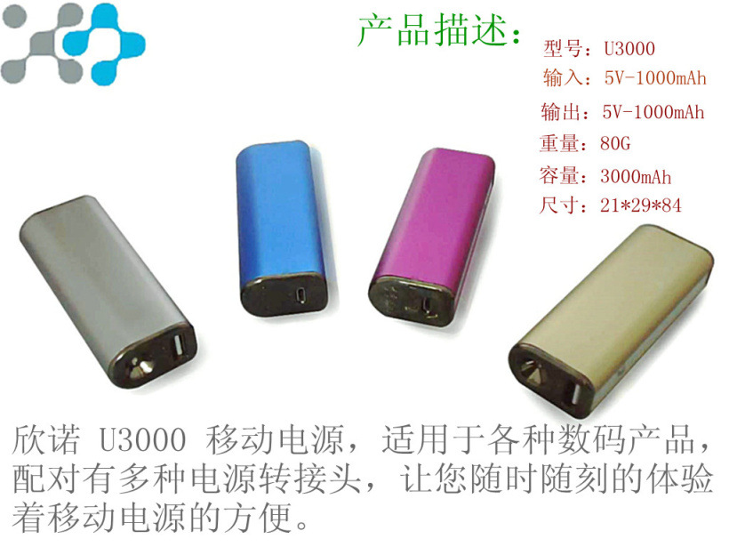 移动电源3000毫安LED照明 支持太阳能充电iphone、三星、数码相机