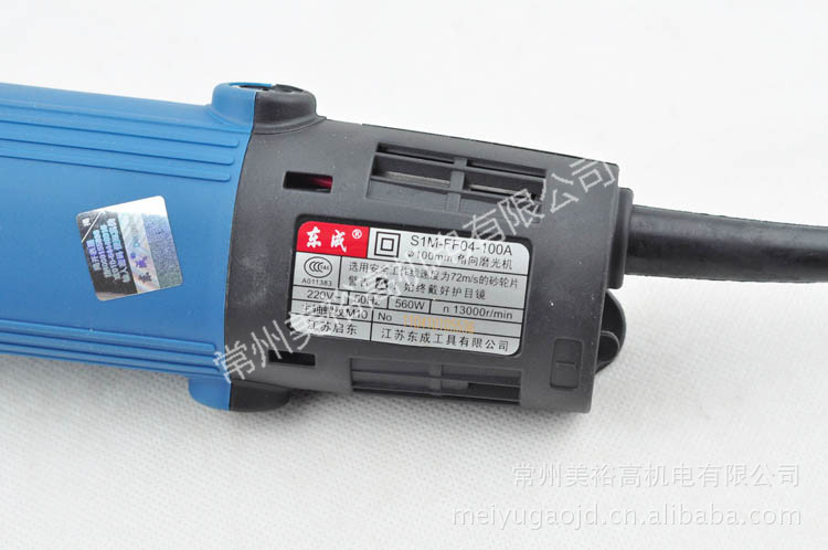 S1M-FF04-100A (角向磨光机)额定电压 Rated Voltage(V~) 220额定频率 Rated Frequency(Hz) 50砂轮片最大直径 Max.Wheel Diameter(mm)Φ100砂轮片孔径 Hole Diameter of Wheel(mm)Φ16额定输入功率 Rated Power Input(W)560额定转速 Rated Speed(r/min)13000净重 Net Weight(Kg)1.7伪查询 (防伪查询)东成牌产品,揭开防伪贴纸表层,拨打4008155888或010-64440315,根据提示音输入16位防伪码。DCA牌产品,揭开防伪贴纸表层,拨打4007163159、8008303159或者新防伪号4006276315、8007076315,根据提示音输入20位防伪码。東强牌产品,揭开防伪贴纸表层,拨打4007163159、8008303159或者新防伪号4006276315、8007076315,根据提示音输入20位防伪码。
