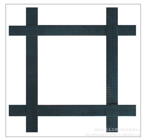 高强钢丝(或其他纤维),经特殊处理,与聚乙烯(PE)或聚丙烯(PP),并添加其他助剂,通过挤出使之成为复合型高强抗拉条带,且表面有粗糙压纹,则为高强加筋土工带。由此单带,经纵、横按一定间距编制或夹合排列,采用特殊强化粘接的熔焊技术焊接其交接点而成型,则为加筋土工格栅。