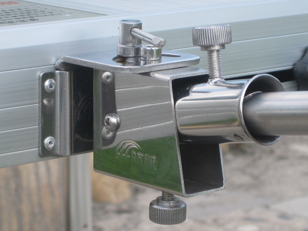 本公司生产的航帆钓台及钓台配件采用优质铝合金型材,高档不锈钢为原料,质量上乘,在同行业属于者。此款炮台可以旋转180度,不分左右,直挂、旁挂都可以用,人性化的设计,多了几个固定点,架杆卡在上面不会晃动。诚招各地经销商、批发商。