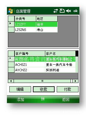 店面管理:店面管理主界面可以按区域对客户进行添加,可针对客户进行收、付款。(此处加入的新客户会在代销、销售模块中显现)。
