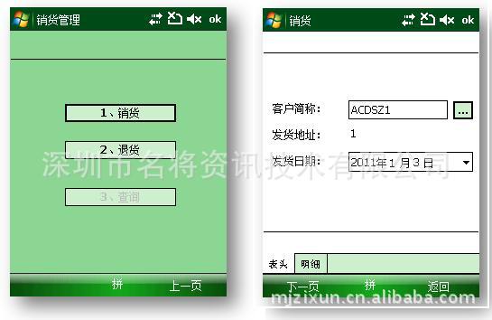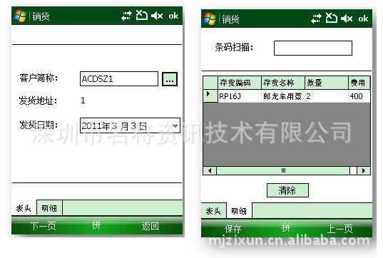 委托代销:委托代销铺货、委托代销结算、委托代销退货委托代销铺货:该功能是将物品分发给代销客户。加入客户代码,扫描产品条码将物品铺货给客户。