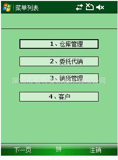 主菜单共分为4大功能,分别是:仓库管理、委托代销、销货管理、客户