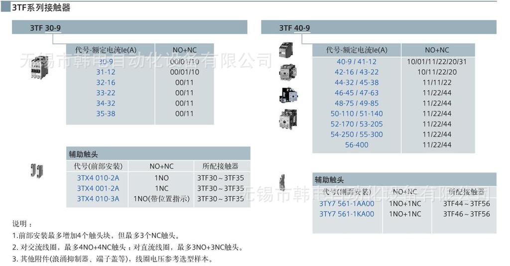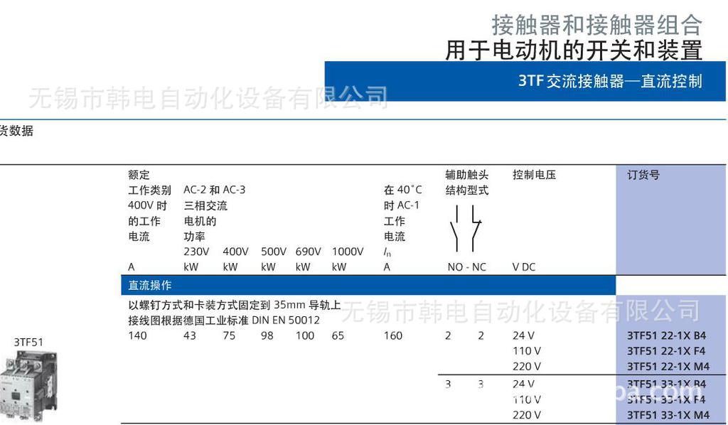 3TF 系列交流接触器为交流50Hz或60Hz,额定绝缘电压为690-1000V,在AC-3使用类别下额定工作电压为380V时的额定工作电流为9A-400A,主要供远距离接通及分断电路之用,适用于控制交流电动机的起动、停止及反转。符合IEC947,VDE0660,GB14048等标准。