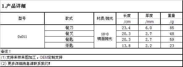 1.材质13-0 18-0 18-10 2.精致品质源自德国工艺 3.外观精美,手感舒适 4.适用于洗碗机 5.酒店、餐厅、超市