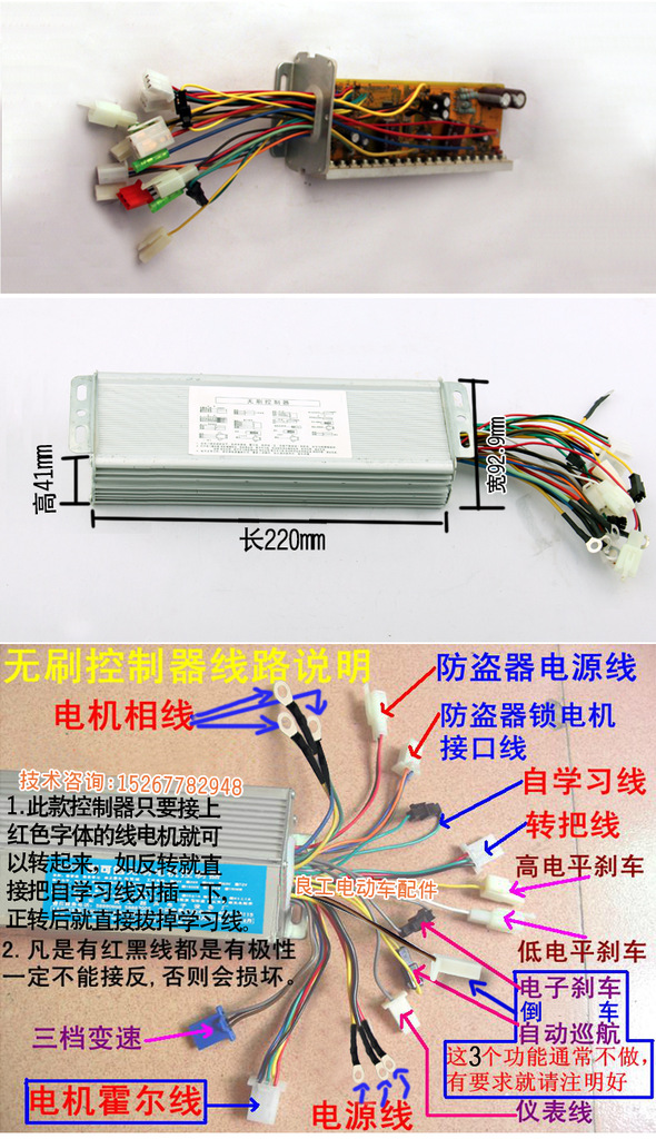 电动车控制器主要功能特点如下: 超静音设计技术:独特的电流控制算法,能适用于任何一款无刷电动车电机,并且具有相当的控制效果,提高了电动车控制器的普遍适应性,使电动车电机和控制器不再需要匹配。