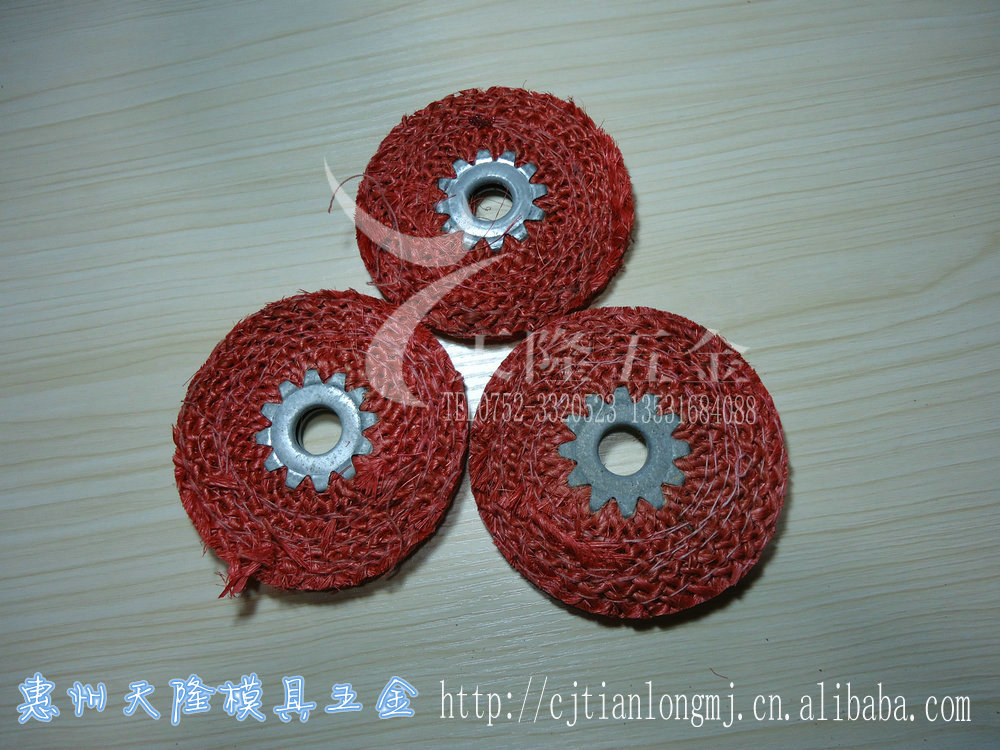 本厂生产的剑麻抛光轮,具有质地坚韧你,切削力大,耐磨度高,加工出的产品表现好。生产效率高,耗用抛光蜡少,节电等优点。
