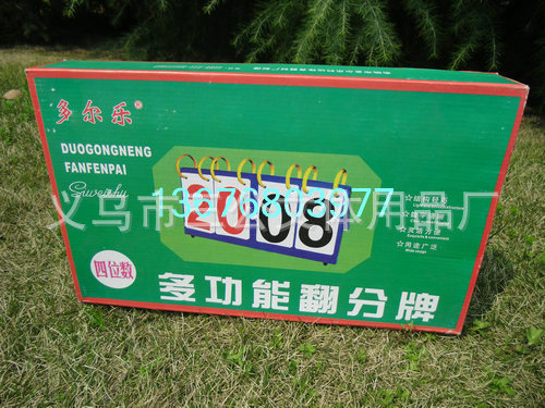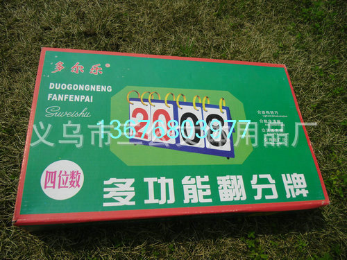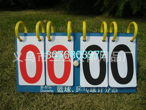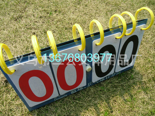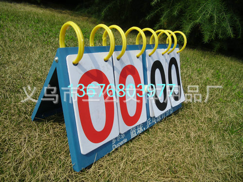 四位数手翻记分牌为两块铁片和印有数字的四片塑料片构成,做工精致,使用简单,可用做篮球乒乓球类记分,或用做单位知识竞赛放在选手桌面显示选手得分.