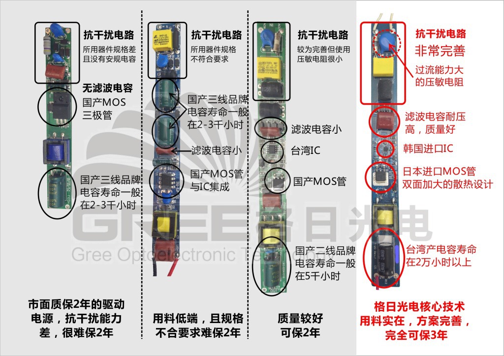格日光电LED日光灯采用高亮度LED作为光源,主要由PC罩、PCB板、铝散热器、塑胶堵头等组成。PC罩透光率高,防眩光、抗UV耐冲击;PCB板采用防静电阻燃耐热绝缘的铝基板,导热系数2.6w/m.k LED排布充分考虑散热与配光,具有高效率和安全性能;铝散热器经特殊表面处理,外形精致、散热好,有效的保证了灯管的使用寿命;塑胶堵头插针为一种低电阻、高传导性能的铜柱,其表面经过了高档沙银防酸氧化处理。约半年下来节省的费用就可以换回成本。绿色环保型的半导体电光源,光线柔和、光谱纯,有利于人的视力保护及身体健康,3500K的暖白色营造一个温馨感人的环境,7000K的冷光源给人视觉上清凉的感受,人性化的照度差异设计,更有助于集中精神,提高效率。它不但超强节能更为环保,是国家绿色节能照明工程重点开发的产品之一,是目前取代传统的日光灯的主要产品。