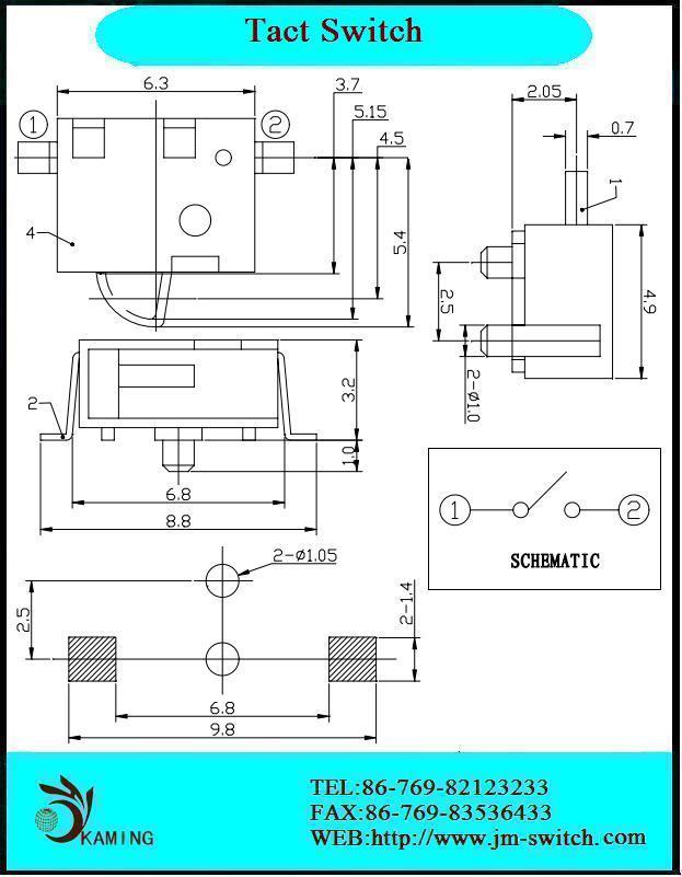 Operating life with load (Load: as ratings) | 50,000 cycles 2Ω max. (0.1A 30V DC) |