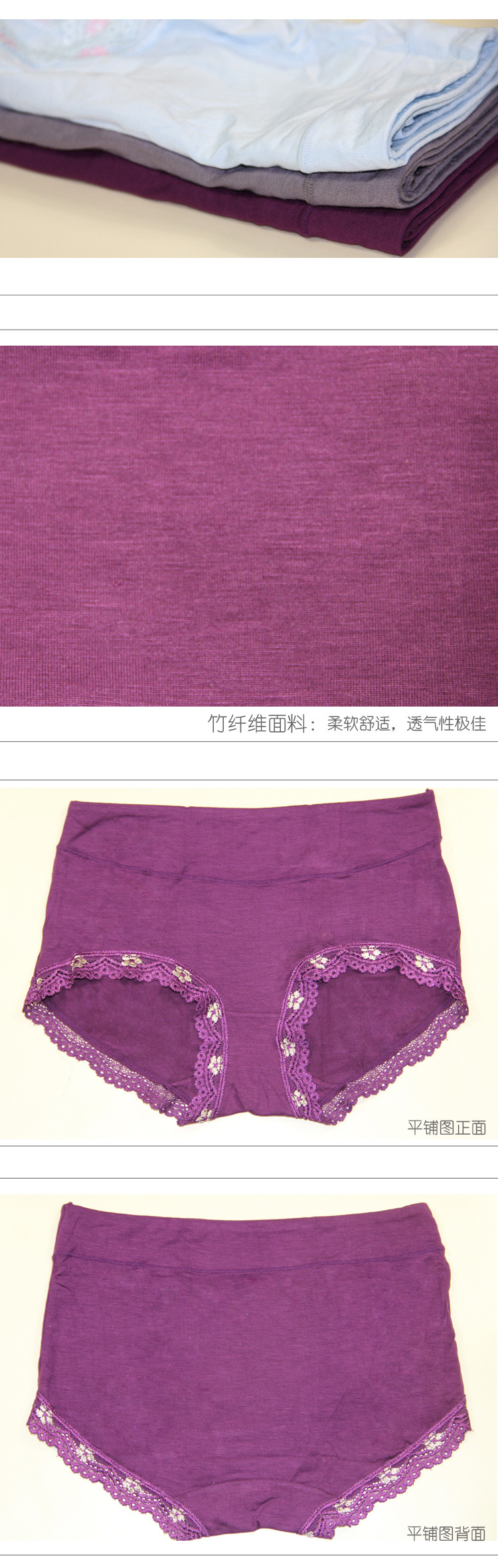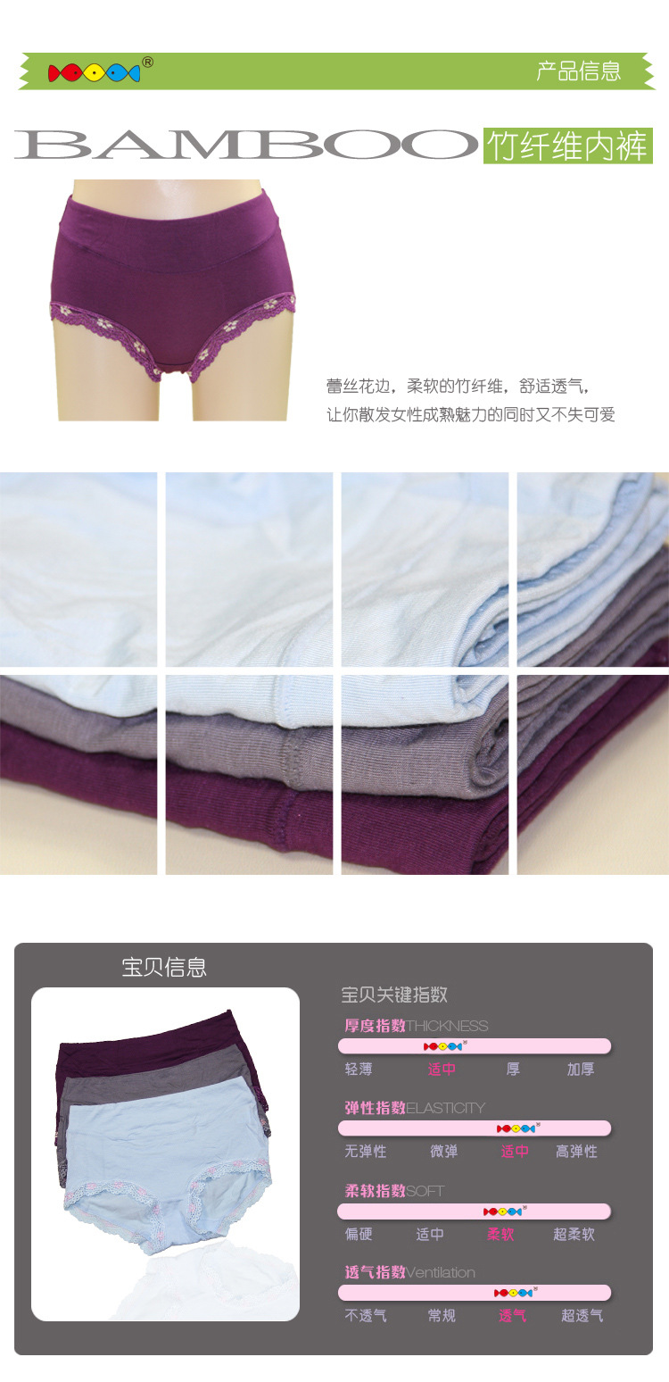 三条鱼服饰内裤 高档竹纤维抗菌三角裤提臀花边中腰女士内裤