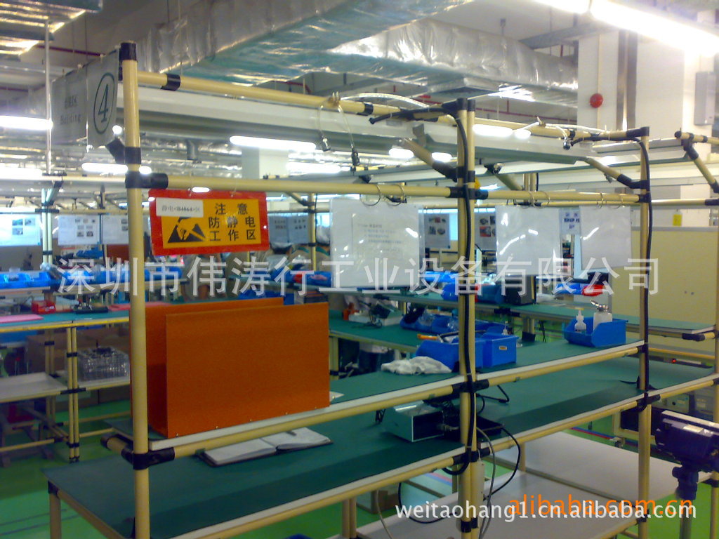 伟涛行线棒工作台是采用直径28mm的精益管配合种类丰富的连接件,并根据作业需要安装台面板,排插等其它一些应用组装而成的工作台。伟涛行线棒工作台可独立、可组合、易于调整,可根据作业需要自由设计组装。适用于各种行业的检测,维修及产品组装;让工厂更整洁,生产安排更轻松、物流更流畅。能适应现代生产不断改善的需求,符合人机原理,使现场工作人员操作标准,舒适,对环境的构思和创意迅速的实现,同时它具有轻便,结实等特点,表面洁净耐磨。