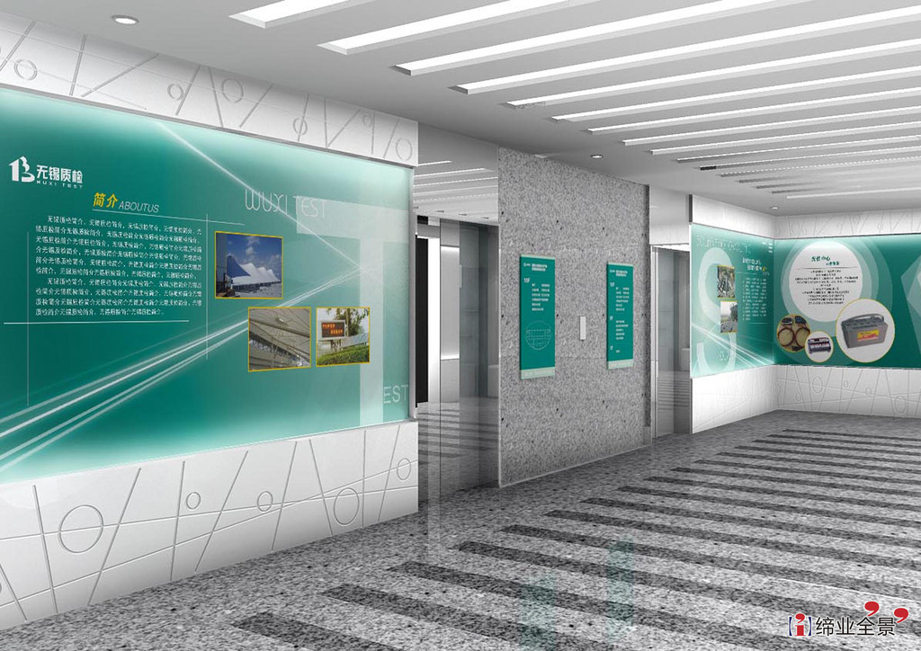 国家不锈钢质检中心展厅设计装修、江苏锦绣铝业企业产品陈列室设计装修、无锡质检展厅设计施工