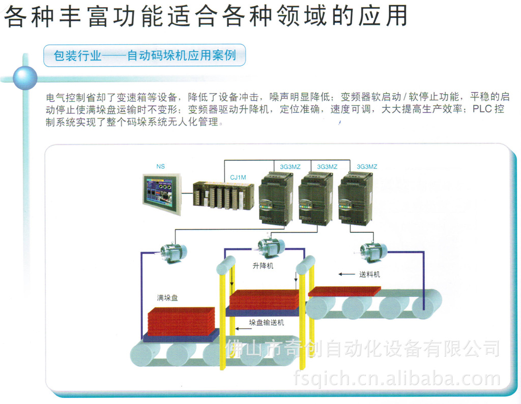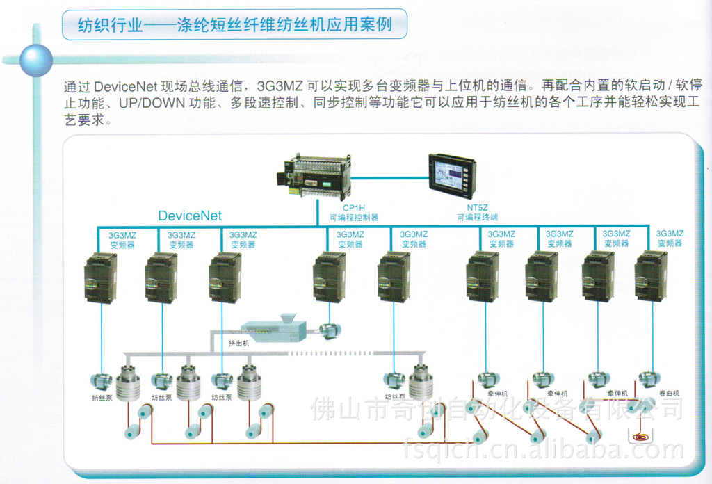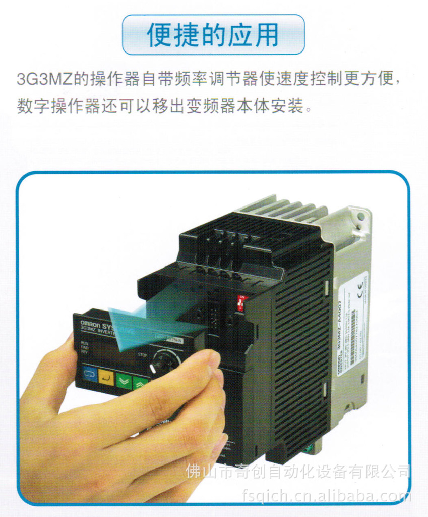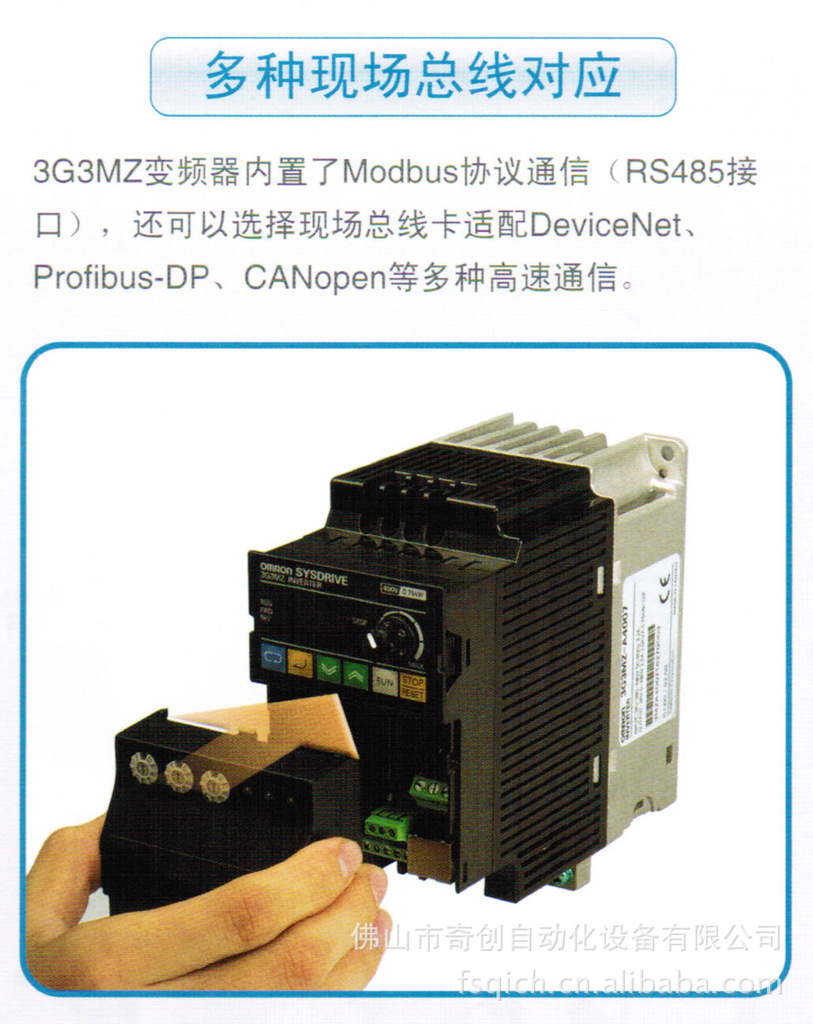 佛山奇创自动化设备有限公司一级代理OMRON全系列产品,3G3MZ系列变频器应用范围较广,被广泛用于纺织行业,自动扶梯,方便远程操作,用于送风机,恒压供水系统等。