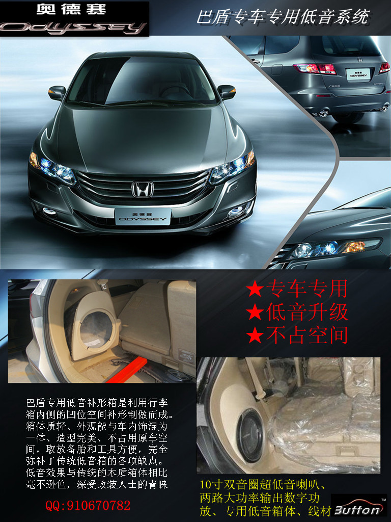 巴盾专车专用低音补形箱质轻、造型美观,无缝安装,外形能与车内饰混为一体。不但弥补了传统低音箱的各项缺点,而且在大声压时抗震性好、密封性更强,音效也不同凡响,最受业内音响改装师的青睐。