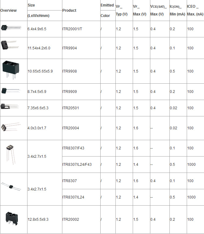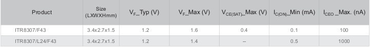 ITR8307/L24/F43(反射式光耦 光电开关 光电传感器)同系列型号: