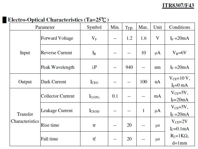 ITR8307/L24/F43(反射式光耦 光电开关 光电传感器)详细参数: