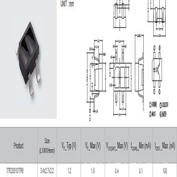 亿光贴片反射式光耦ITR20510 尺寸图: