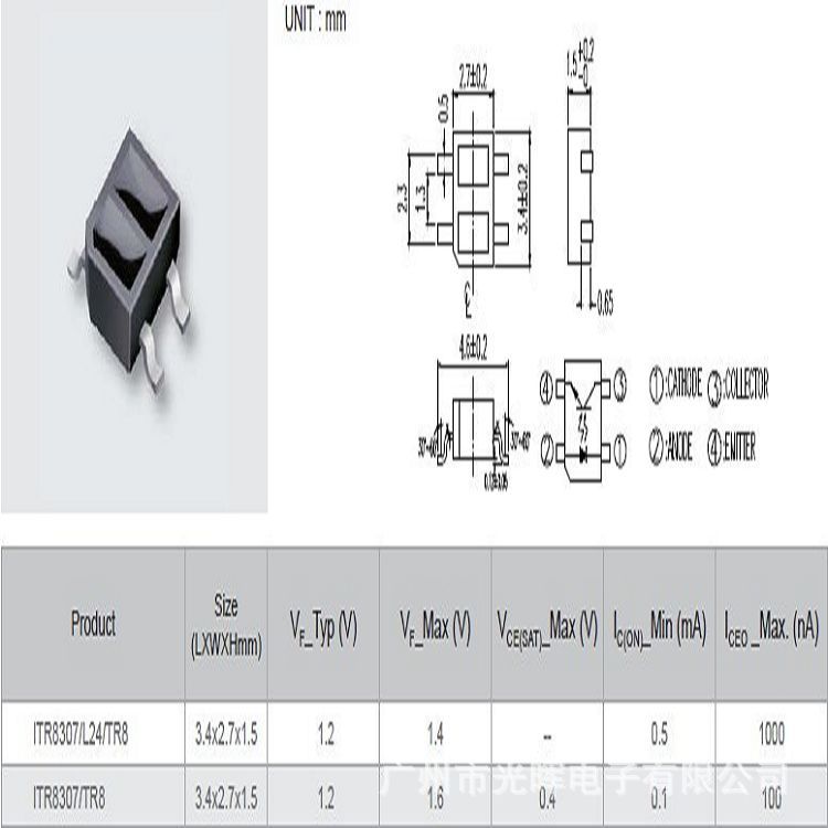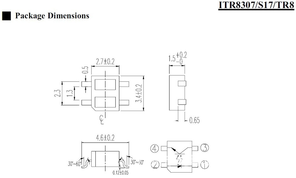 亿光贴片反射式光耦ITR8307/L24/TR8 尺寸图:
