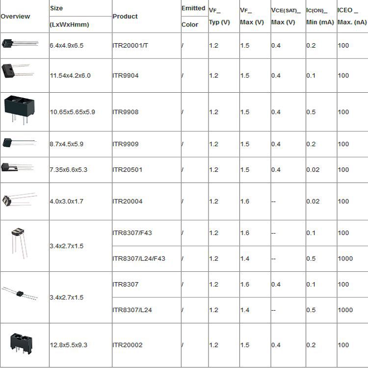 ITR9909(光电开关/反射式光耦/红外线对管)同系列型号: