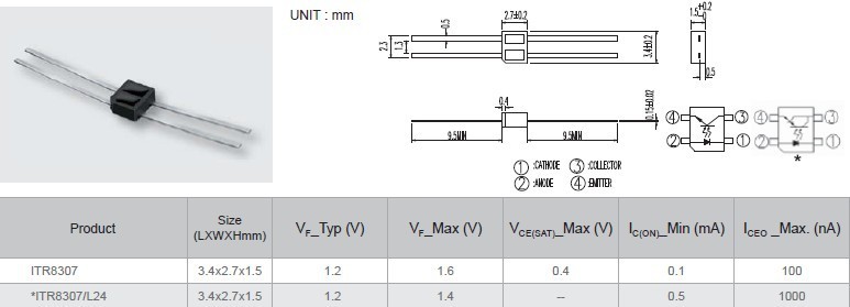 ITR8307尺寸(mm):3.4*2.7*1.50
