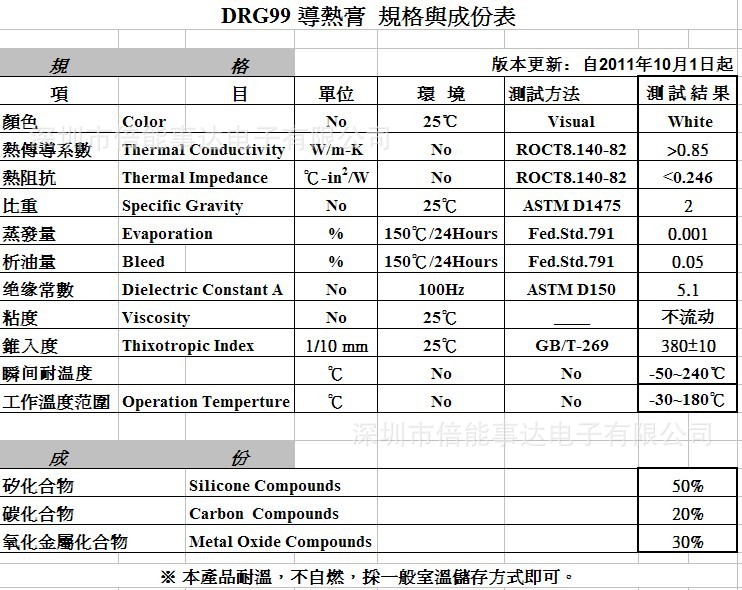本产品具有高热传导,高绝缘,高耐温,长时间暴露不会风干,不易挥发,无毒、无味、无腐蚀性。