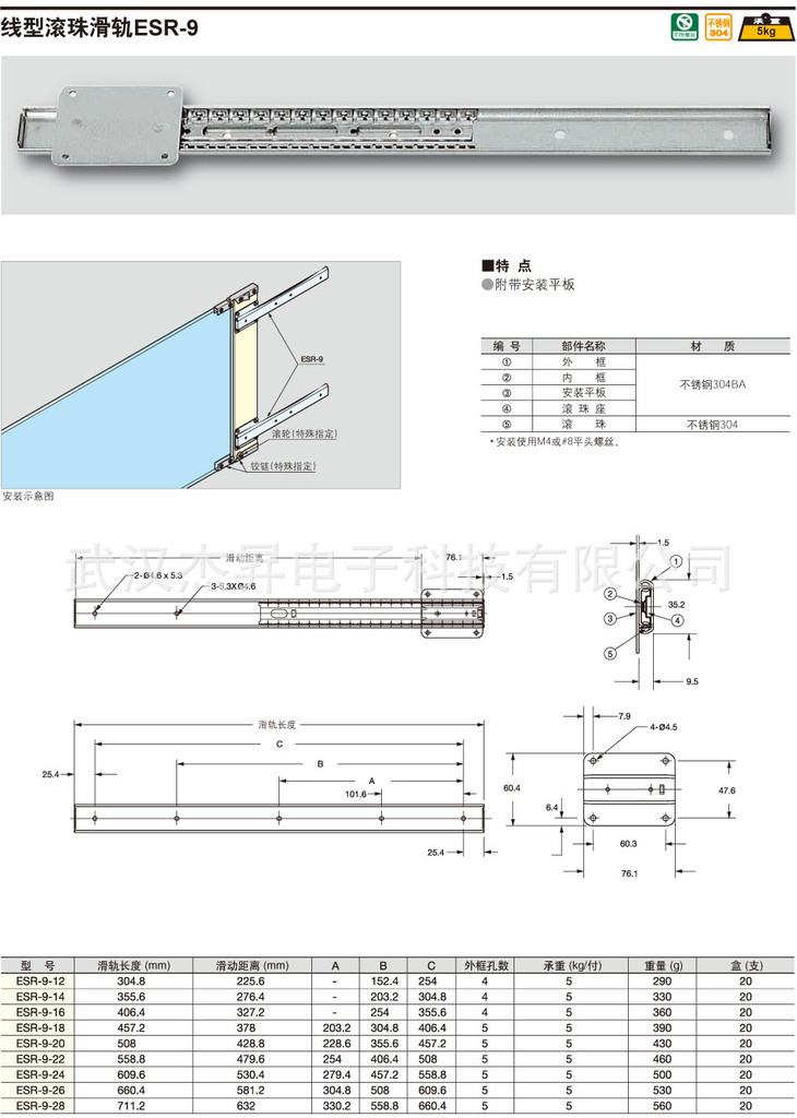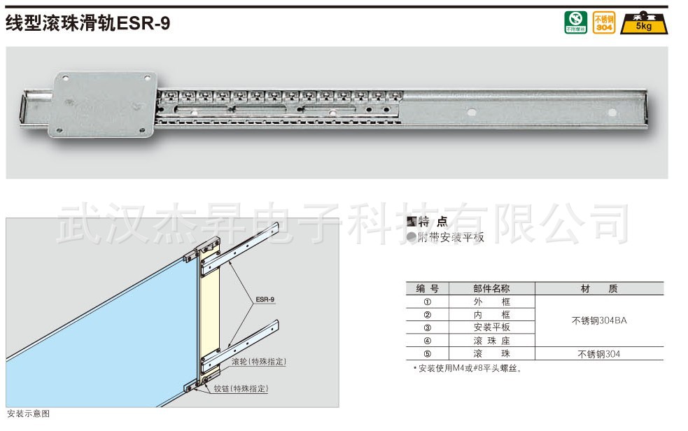 ●滑动时,内轨始终位于滚珠座内,可实现正确的往复运动。