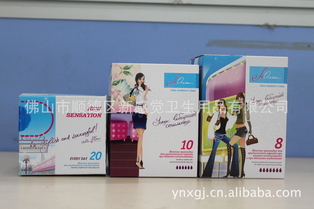 1.采用柔软、透气的打孔膜,使芯体能快速吸收经血,不回渗,给女性的肌肤带来全新的舒适感。