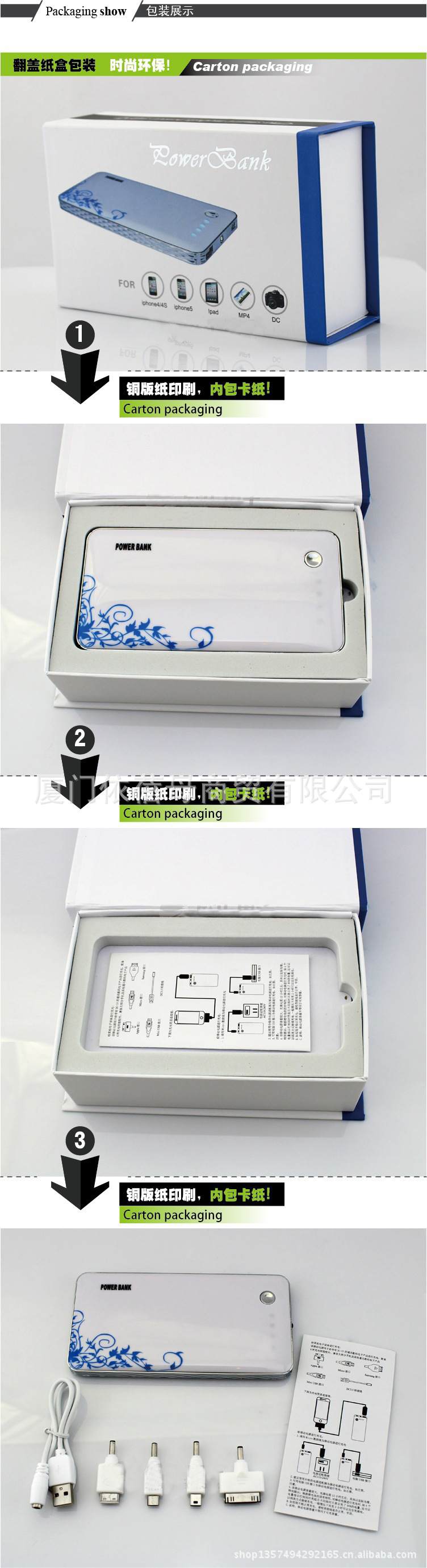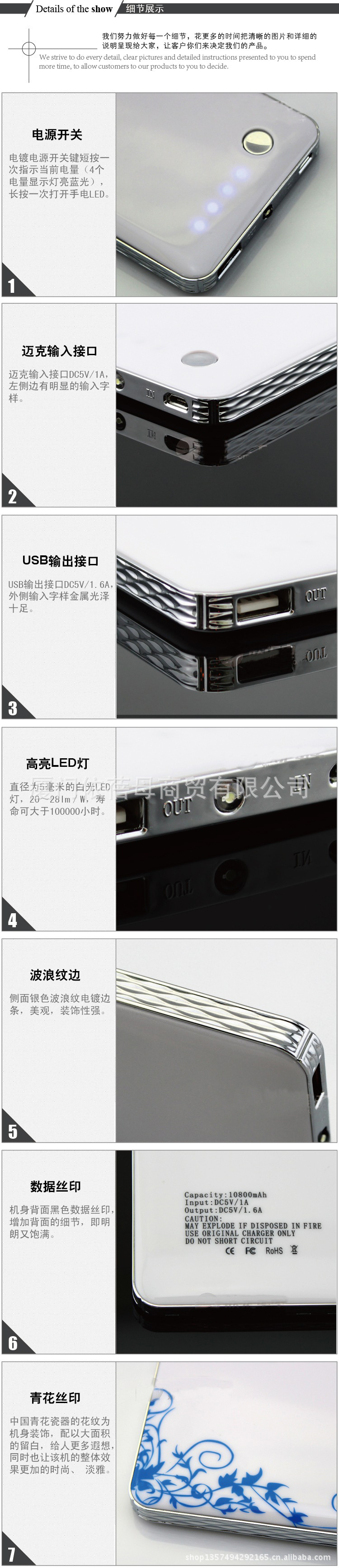 功能:通用型移动电源带LED灯型号:BRS-108 容量:10800MAH