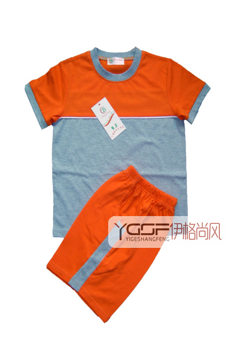 订做小学校服 幼儿园园服 团体演出服 工厂直销 圆领拼色套装9013
