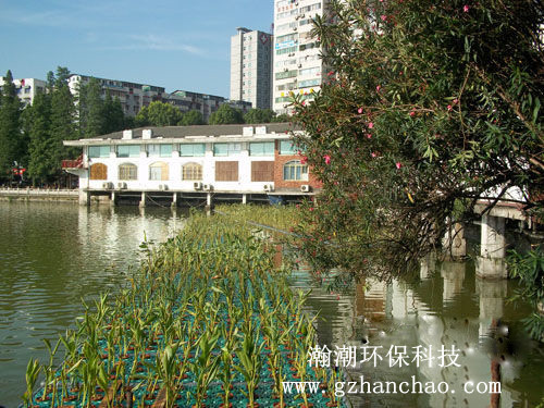 瀚潮生态浮床技术是应用无土栽培的原理,把具有净水、观赏及经济价值的高等水生植物或经改良驯化后的陆生草本、木本植物移栽到富营养化水体的水面种植,利用可漂浮在水面并能够承受较大重量的生态浮板作为载体,通过植物深入水中强大根系的吸收、吸附、截留作用(挺水植物如美人蕉、梭鱼草等,浮水植物如水金钱、狐尾藻等),物种竞争相克的机理,以及微生物的生化降解等作用,削减富营养化水体中的N、P及有机物质,并以收获植物体的形式将其搬离水体,从而达到净化水质的效果,是一种行之有效的原位生态修复技术。