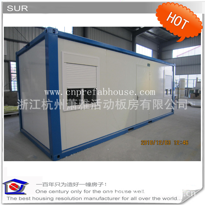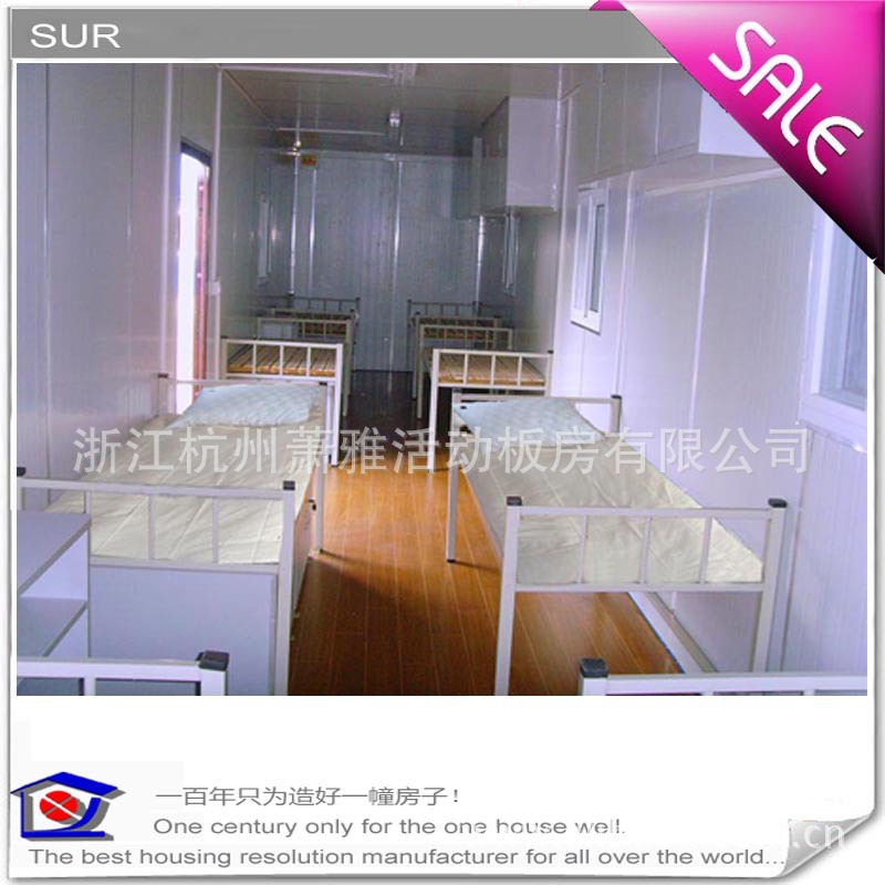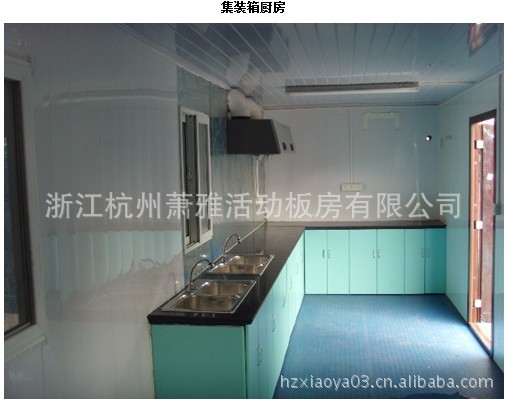 集装箱活动房(一窗,一门,配电箱,日光灯,插座等),此箱型被广泛运用于建筑工地、仓库、军队及外资企业等,可居住,办公,仓储,有卫生间箱,淋浴箱等,产品主框架为特殊型钢板压制而成,侧板有特殊隔音、隔热填充物,可起到隔热隔音防寒防火的作用。产品自重1.7吨左右,方便吊装(整体)。