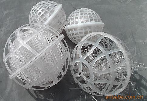 该填料是用聚乙烯或聚丙烯材料注塑而成的圆形球体,分内外双层,外部为中空鱼网状球体,内部为多扇立体式球体或塑料丝。该产品具有全立体结构,直接投放,无需固定;比表面积大,易挂膜,不堵塞;全塑结构具有好氧功能,微生物易生成、易更换、耐酸碱、抗老化,不受水流影响,使用寿命长,剩余污泥极少,安装方便。