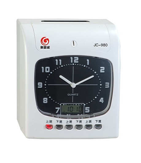 流线型外观设计;·液晶、钟面及CPU同步时间显示,时间无比;·钟面液晶双显示(OP-920)·全新特殊按键防尘装置,,稳定,牢固,卓越品质;·使用寿命达50万次以上,每分钟可打卡25次;·自动万年历设计,闰年,闰月自动调整;·采用六栏位红/黑双色列印日期时间;·可设定自动或手动时段调整(共24组);·换日时间可自行设定;·可设定卡片正反面辨别;·内置音乐响铃并可外接音乐、电铃(共计24组);