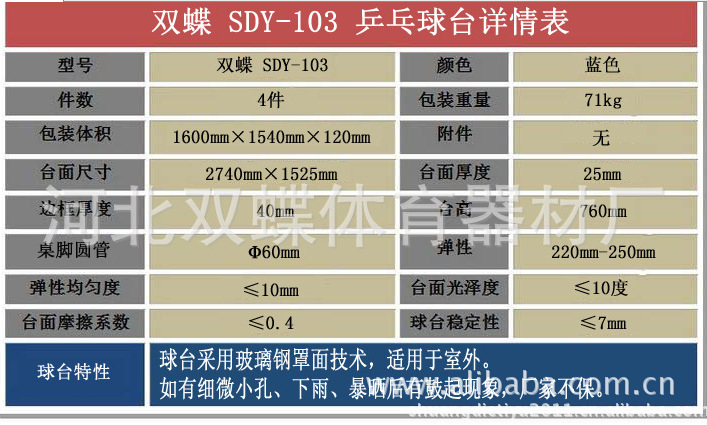 厂家直销各种室内乒乓球台 双蝶牌T2828-彩虹折叠式球台