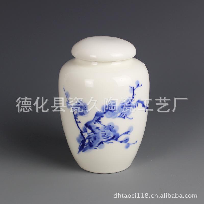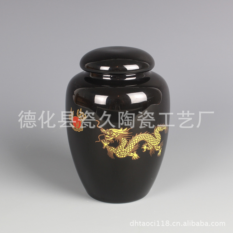 【商品名称】德化厂家供应釉上彩陶瓷罐 LOGO印制鸳鸯图瓶形罐 礼品茶叶罐