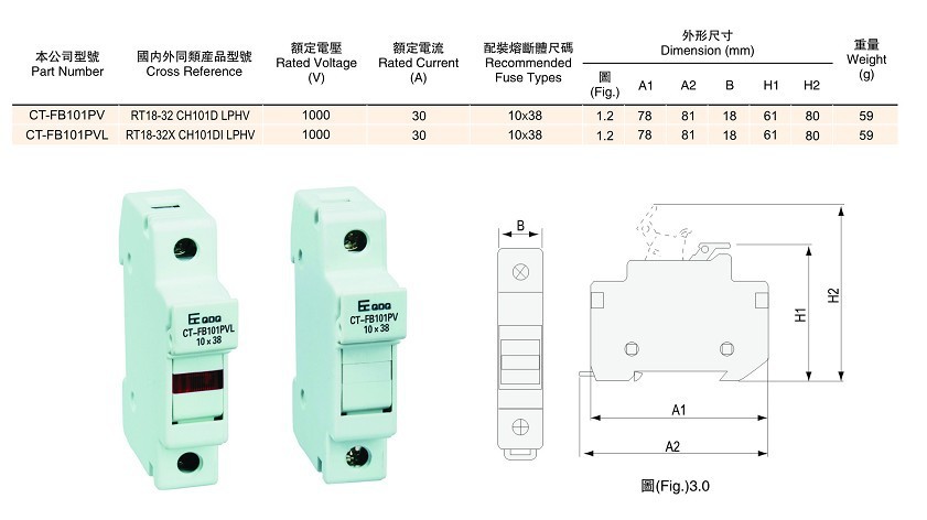 CT-FB101PVL 熔断器保险丝底座FUSE QDQ台湾侨电企业厂家直销
