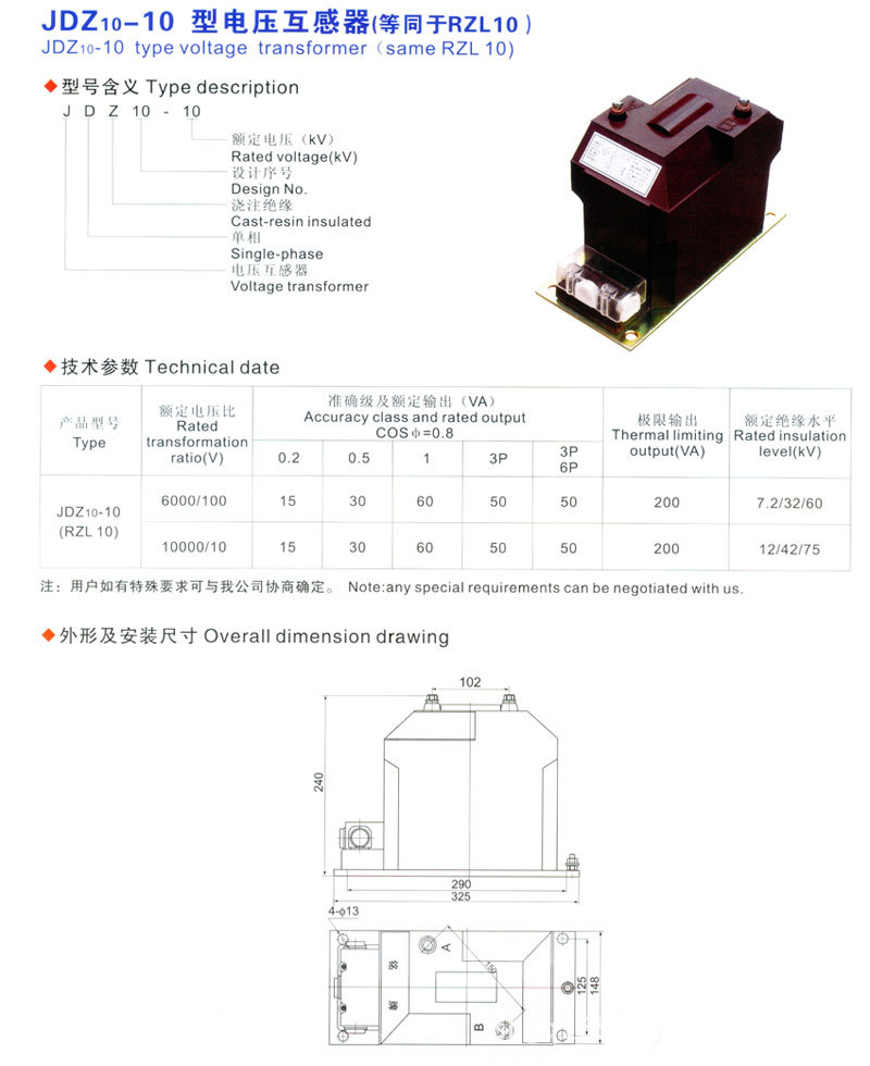 概述:JDZX10-3、6、10(A、B)型10KV高压互感器(以下简称高压互感器)采用环氧树脂浇注全绝缘全封闭式结构,适用于额定频率50Hz或60Hz、额定电压为10kV及以下的电力系统中,做电能计量、电压监测和继电保护用。