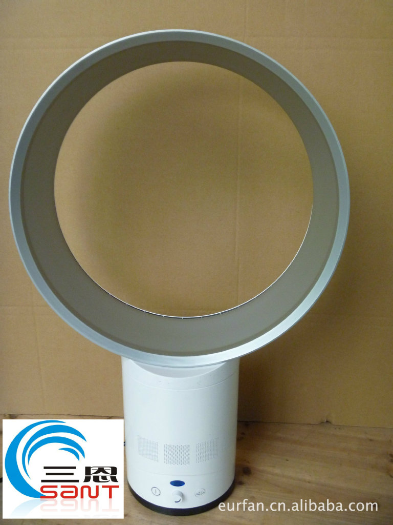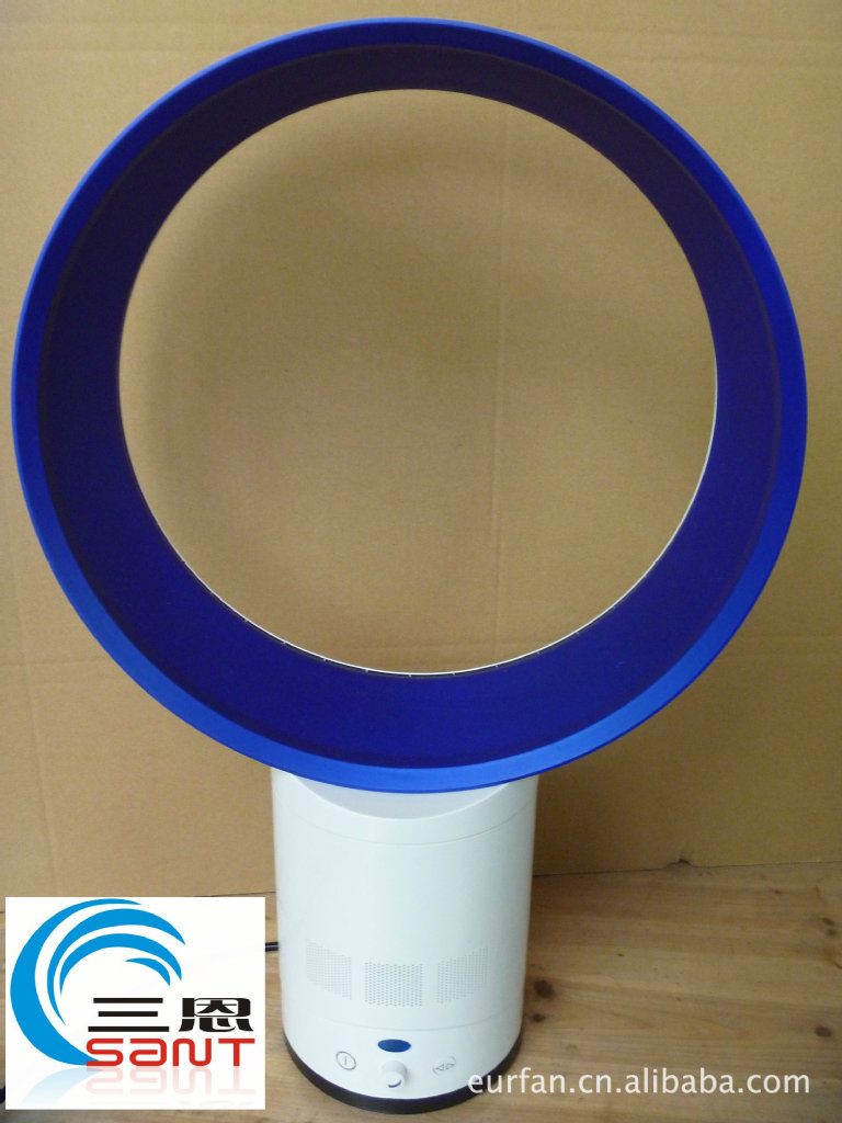 无叶风扇工作原理在于,风扇底座有个吸风装置,风扇底座有许多小孔,当接通电源后底座吸风装置开始工作,吸入空气,然后上面的圆环中间有一小细缝,经过的气压的不同,风被冷却挤出。