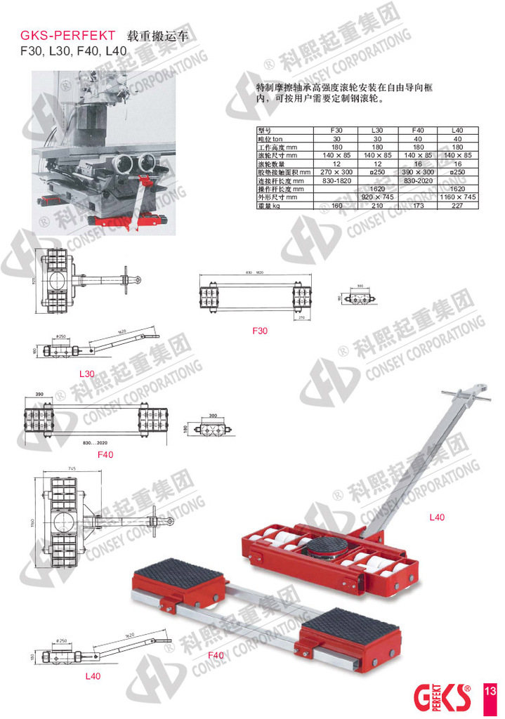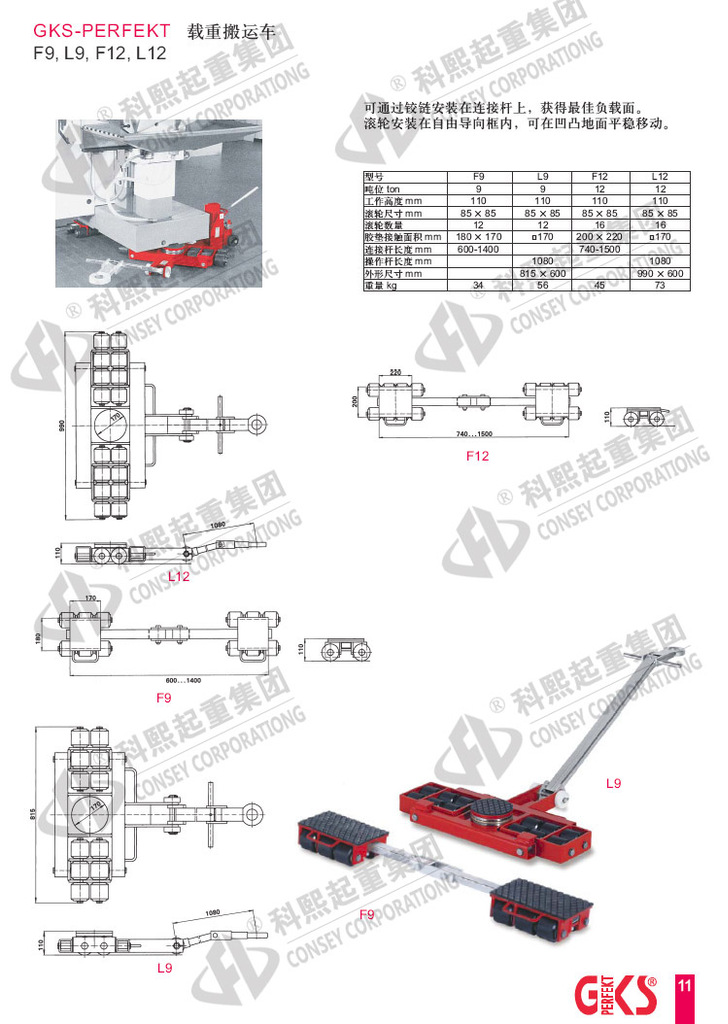 GKS F18+L18 F40+L40 F60+L60重物移位器载重搬运小坦克: